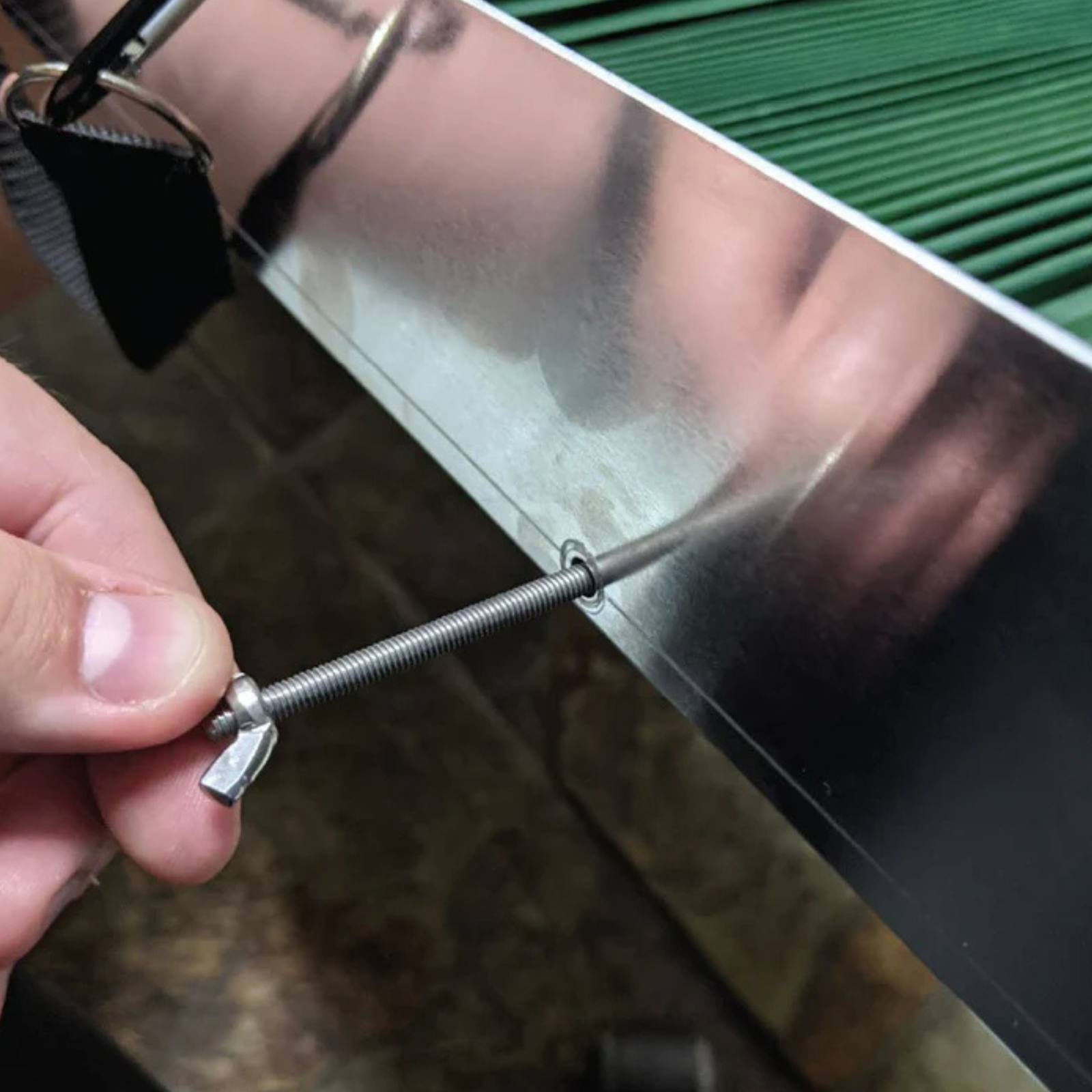 Remove the nut from the rod holding the mat.