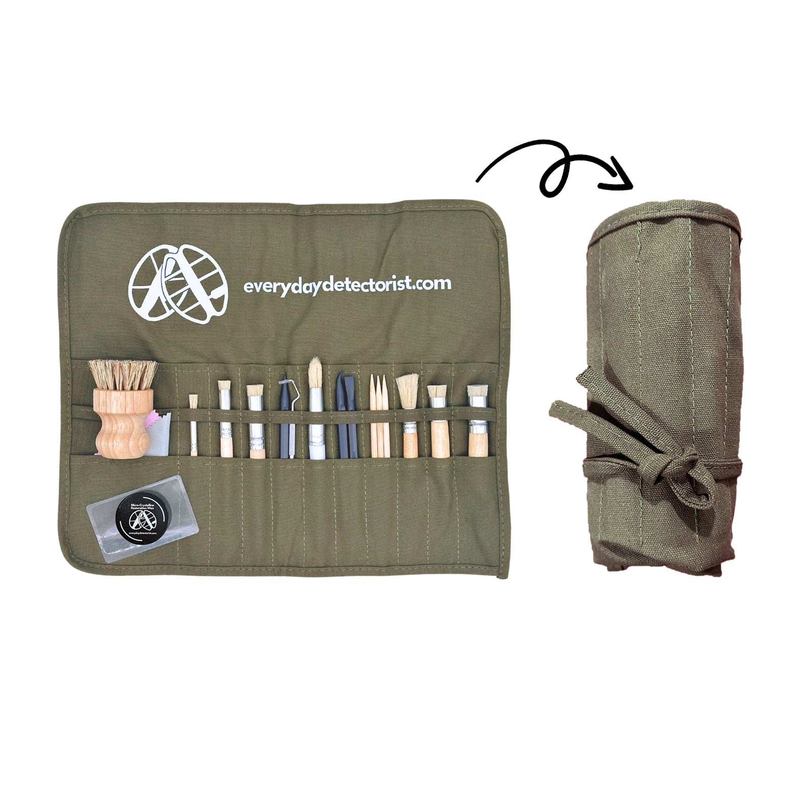 Crafted from natural fibers, the graduated cleaning brushes offer gentle yet thorough cleaning for your coins and relics.